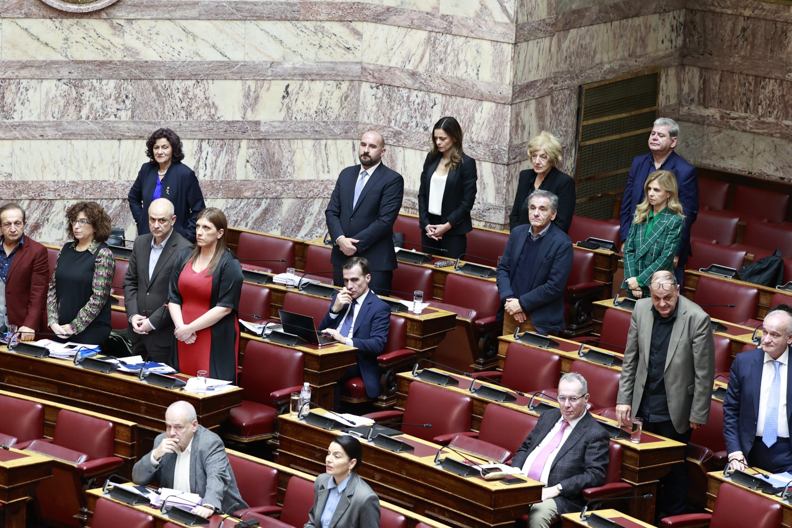 Ωστόσο, καθιστοί στις θέσεις τους, έμειναν οι βουλευτές της Νέας Δημοκρατίας, των «Σπαρτιατών» και του κόμματος «Νίκη» ενώ το ίδιο έπραξαν και όσοι εκπρόσωποι της κυβέρνησης βρίσκονταν στην αίθουσα.