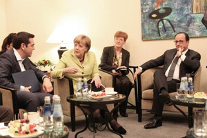 Ευρωπαίοι αξιωματούχοι άφηναν χθες να εννοηθεί ότι η σημερινή συνάντηση μεταξύ του Αλέξη Τσίπρα, της Γερμανίδας καγκελαρίου και του Γάλλου προέδρου δεν επρόκειτο να πραγματοποιηθεί, κάτι που ωστόσο προς το παρόν διαψεύδεται.