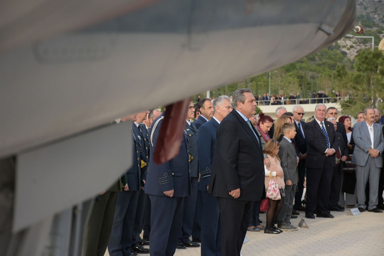 Όταν επιθεώρησα για πρώτη φορά τις τάξεις της Σχολής Ικάρων, οι υπασπιστές μου είπαν «Κύριε Υπουργέ, στατιστικά το 10% των παιδιών που ορκίζονται σήμερα δεν θα τελειώσουν την καριέρα τους στην Πολεμική Αεροπορία», γιατί οι Έλληνες Αεροπόροι ασκούνται εν καιρώ ειρήνης σε συνθήκες πολέμου, για όλους εμάς. Και αξίζει ένα τέτοιο μνημείο που τους έχει συγκεντρώσει σήμερα όλους μαζί, για να τους αποδώσουμε τις οφειλόμενες τιμές.