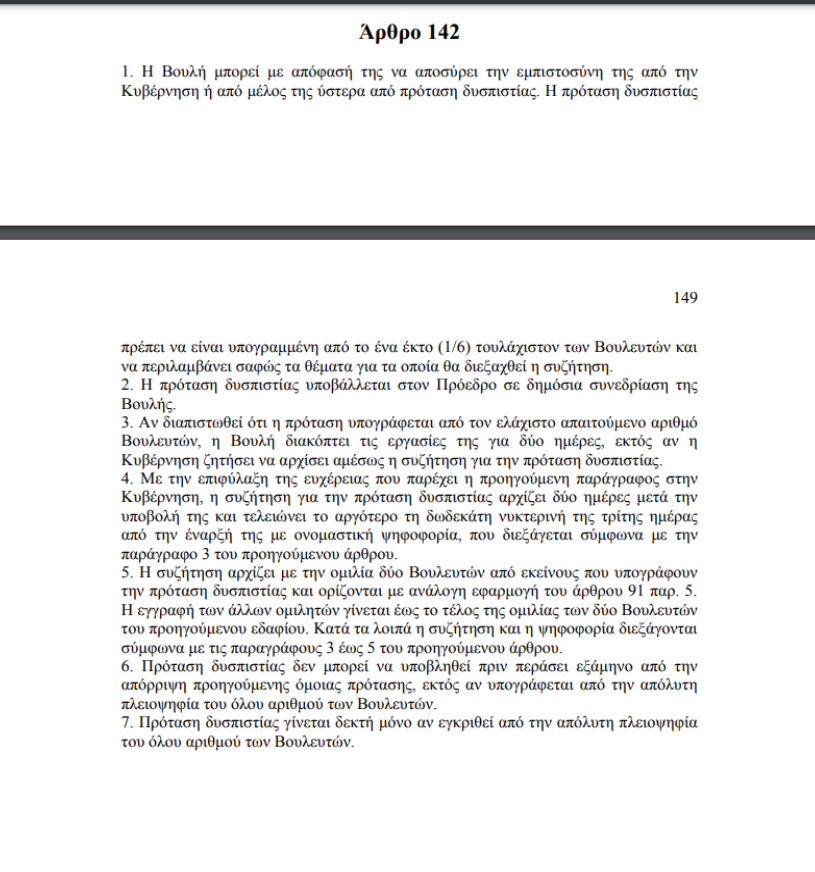 Δείτε τι προβλέπει το άρθρο 142 του Κανονισμού της Βουλής.