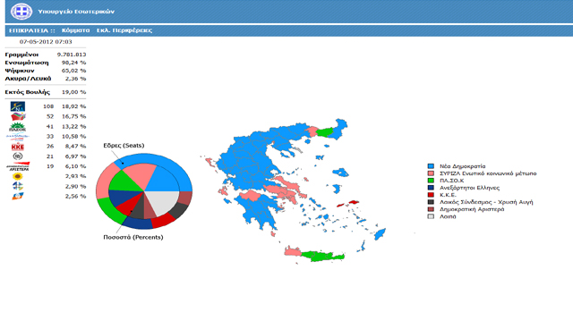 Η ακυβερνησία είναι ένα πιθανό σενάριο, με δεδομένο το μέχρι στιγμής αποτέλεσμα της κατανομής των εδρών μεταξύ των κομμάτων.