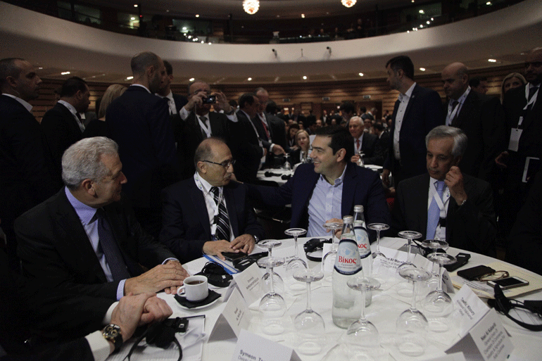 Εκτός από τον Έλληνα πρωθυπουργό, από ελληνικής πλευράς θα συμμετάσχουν ακόμα ο πρόεδρος της Νέας Δημοκρατίας Κυριάκος Μητσοτάκης, ο υπουργός Επικρατείας Νίκος Παππάς, ο υπουργός Οικονομίας, Ανάπτυξης και Τουρισμού Γιώργος Σταθάκης, ο υπουργός Υποδομών, Μεταφορών και Δικτύων Χρήστος Σπίρτζης, ο υπουργός Εργασίας Γιώργος Κατρούγκαλος, ο αναπληρωτής υπουργός Αγροτικής Ανάπτυξης Μάρκος Μπόλαρης, ο διοικητής της Τράπεζας της Ελλάδος Γιάννης Στουρνάρας, ο αναπληρωτής υπουργός Εσωτερικών για θέματα Μεταναστευτικής Πολιτικής Γιάννης Μουζάλας, η αναπληρώτρια υπουργός Τουρισμού Έλενα Κουντουρά, ο γ.γ. Διεθνών Οικονομικών Σχέσεων του ΥΠΕΞ Γιώργος Τσίπρας, η πρόεδρος της Εθνικής Τράπεζας και της Ελληνικής Ένωσης Τραπεζών Λούκα Κατσέλη, ο επίτροπος Μετανάστευσης, Εσωτερικών Υποθέσεων και Ιθαγένειας Δημήτρης Αβραμόπουλος, ο επίτροπος Ανθρωπιστικής Βοήθειας και Διαχείρισης Κρίσεων Χρήστος Στυλιανίδης, ο πρόεδρος της Ένωσης Κεντρώων Βασίλης Λεβέντης, ο πρόεδρος του ΕΒΕΑ Κωνσταντίνος Μίχαλος, οι πρώην υπουργοί Μιλτιάδης Βαρβιτσιώτης, Πέτρος Δούκας, Γ. Μανιάτης κ.ά.