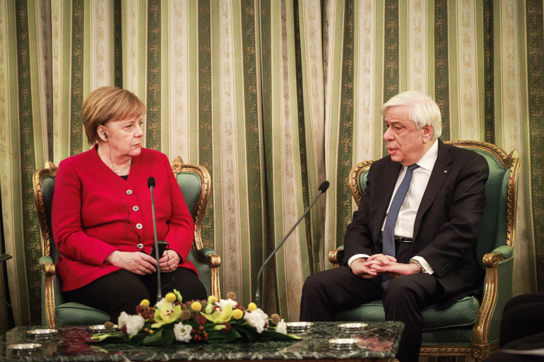 Κατά την υποδοχή, ο κ. Παυλόπουλος ανέφερε ότι «ήδη από το 2016 διαλύθηκαν κάποιες παρανοήσεις για την αμετάκλητη απόφαση της Ελλάδας να παραμείνει στην Ε.Ε. Έκτοτε ακολουθήσαμε την ευρωπαϊκή πορεία, κάνοντας πολλές θυσίες, ακόμη και για λάθη που δεν μπορούσαν να μας αποδοθούν. Η Γερμανία και εσείς στηρίξατε την Ελλάδα και την έξοδο από τα μνημόνια. Αυτό που κάνατε ήταν καλό και για τη Γερμανία, και τόνωσε το δικό σας ηγετικό ευρωπαϊκό προφίλ. Ακόμη και τώρα στηρίζοντας την Ελλάδα στηρίζετε τη συνοχή της Ε.Ε.».