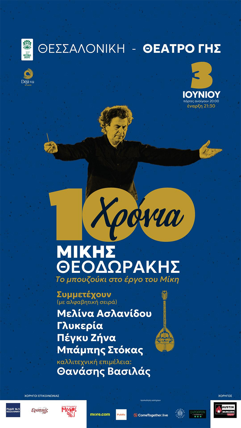 Με αφορμή τη συμπλήρωση 100 χρόνων από τη γέννηση του Μίκη Θεοδωράκη, πραγματοποιείται ένα μοναδικό μουσικό αφιέρωμα στο Θέατρο Γης, την Τρίτη 3 Ιουνίου, στο πλαίσιο του 11ου Φεστιβάλ Δάσους, που τιμά το έργο του σπουδαίου Έλληνα συνθέτη και τη σχέση του με το μπουζούκι, το οποίο ανέδειξε σε πρωταγωνιστή της ελληνικής μουσικής , τόσο στην Ελλάδα όσο και διεθνώς.