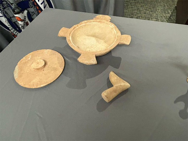 Ανάμεσα στα επαναπατρισθέντα 11 αρχαία αντικείμενα περιλαμβάνεται μαρμάρινη ανδρική εικονιστική κεφαλή (πρώτο μισό 1ου αι. μ.Χ), μαρμάρινο αττικό αναθηματικό ανάγλυφο της κατηγορίας των «νεκροδείπνων» (δεύτερο μισό 4ου αι. π.Χ.), μαρμάρινη λεκανίδα με πώμα και μαρμάρινος δοίδυκας (γουδοχέρι, 5ος-4ος αι. π.Χ.), χάλκινο γυναικείο αγαλμάτιο (3ος αι. π.Χ.), μικροσκοπική χάλκινη γυναικεία προτομή (3ος αι. π.Χ.), χρυσό δαχτυλίδι με παράσταση Ποσειδώνα με τρίαινα στη σφενδόνη (1ος αι. π.Χ. – 1ος αι. μ.Χ.), πήλινο μυκηναϊκό γυναικείο ειδώλιο τύπου Ψ (1300-1200 π.Χ.), πήλινο μελανόμορφο αρύβαλλο με παράστασης μάχης (600-500 π.Χ.), πήλινο μελαμβαφή κάνθαρο (4ος αι. π.Χ.), και πήλινα λυχνάρια του 4ου αι. π.Χ.