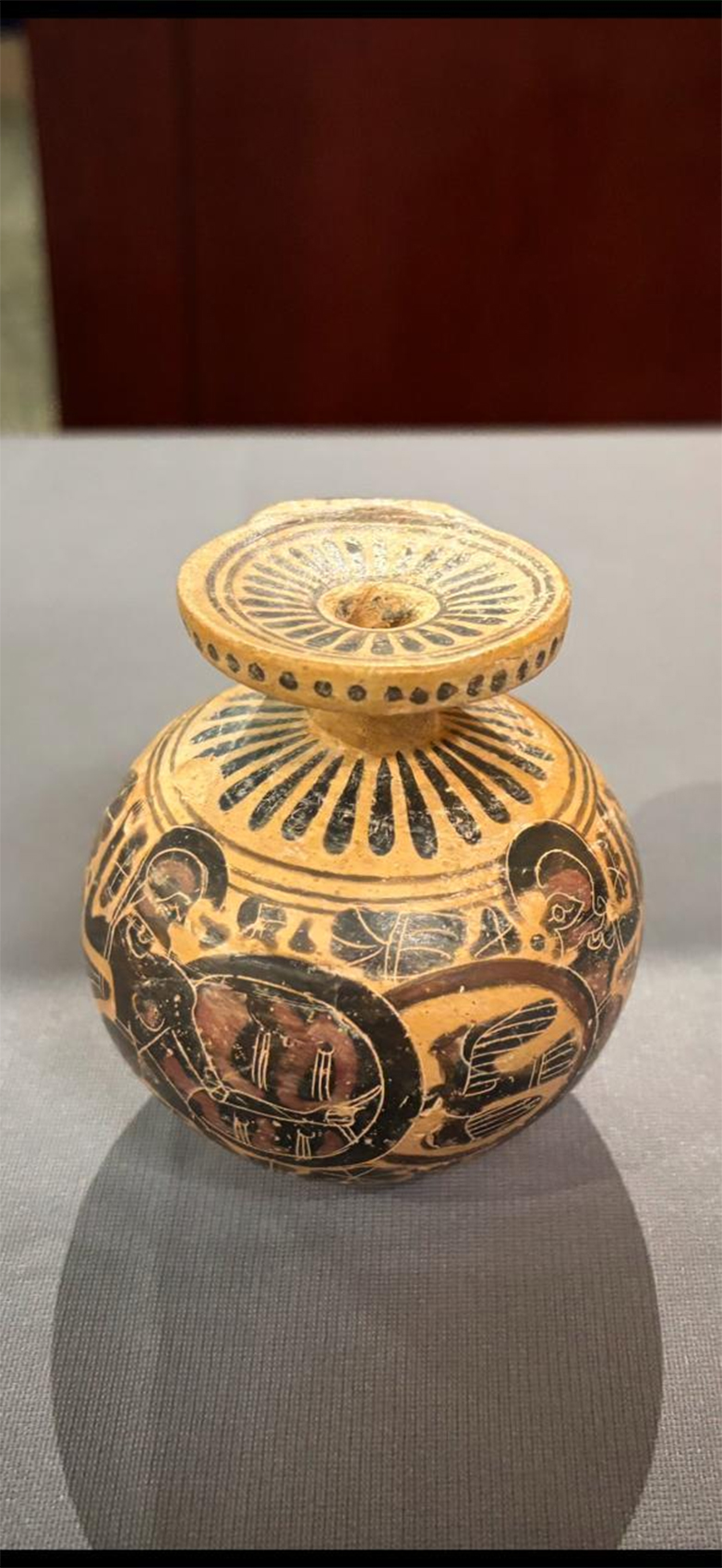 Πήλινο μελανόμορφο αρύβαλλο με παράστασης μάχης (600-500 π.Χ.)