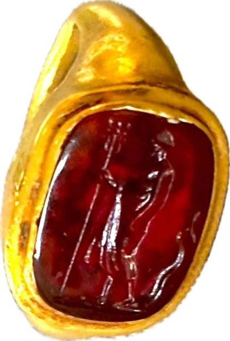 Xρυσό δαχτυλίδι με παράσταση Ποσειδώνα με τρίαινα στη σφενδόνη (1ος αι. π.Χ. – 1ος αι. μ.Χ.)