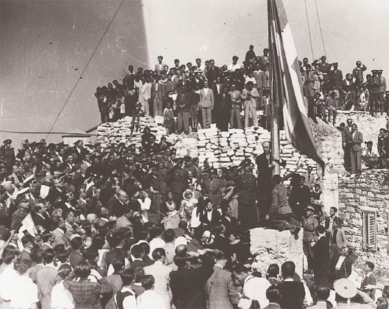 Το μόνο που απέμενε ήταν η υποστολή της ναζιστικής σημαίας από τον Ιερό Βράχο της Ακρόπολης. Ένας Γερμανός στρατιώτης κατέβασε τη σβάστικα χωρίς καμία επισημότητα στις 9:15 το πρωί, την πήρε υπό μάλης και αποχώρησε με σκυμμένο το κεφάλι, σηματοδοτώντας το τέλος της γερμανικής κατοχής που διήρκεσε 1.625 μέρες και την αρχή ενός τρελού πανηγυριού στους δρόμους της Αθήνας.