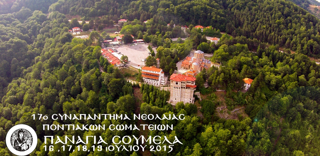 Το Πανελλήνιο Ιερό Προσκύνημα «ΠΑΝΑΓΙΑ ΣΟΥΜΕΛΑ», με τις ευλογίες του Σεβασμιοτάτου Μητροπολίτου Βεροίας Ναούσης & Καμπανίας κ.κ. Παντελεήμονα, θα πραγματοποιήσει και φέτος το 17ο «Συναπάντημα» της Νεολαίας Ποντιακών Σωματείων, της τρίτης και τέταρτης προσφυγικής γενιάς των Ποντίων, στους χώρους του Ιερού Προσκυνήματος, της Παναγίας Σουμελά στην Καστανιά Ημαθίας από 16 έως 19 Ιουλίου 2015.