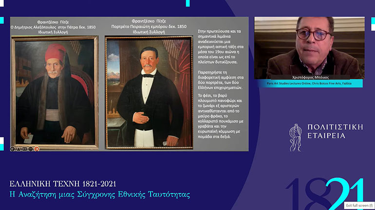 Στη διαδικτυακή εκδήλωση, με τίτλο «Ελληνική Τέχνη, 1821-2021: Η Αναζήτηση μιας Σύγχρονης Εθνικής Ταυτότητας», που πραγματοποιήθηκε χθες το απόγευμα, ο Χριστόφορος Μπόικος -εισηγητής πολυάριθμών διαλέξεων πάνω σε διαφορετικές θεματικές και πτυχές της ιστορίας της τέχνης, με έδρα το Παρίσι και δραστηριότητα διεθνώς- επικεντρώθηκε στην αναζήτηση για μια ξεχωριστή ελληνική ταυτότητα, η οποία αντανακλάται στο έργο Ελλήνων καλλιτεχνών από την εποχή της μοναρχίας του Όθωνα της Βαυαρίας (1832-1862) μέχρι τα τέλη του 20ού αιώνα.