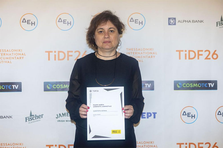 Το βραβείο της Διεθνούς Αμνηστίας απονέμεται σε έργο που προωθεί και προβάλλει τα ανθρώπινα δικαιώματα και καταγγέλλει την καταπάτησή τους και απονεμήθηκε στο ντοκιμαντέρ «Όσα αφήσαμε πίσω» του Μάτσεκ Χαμέλα. Ειδική Μνεία Διεθνούς Αμνηστίας έλαβε το ντοκιμαντέρ «Αδέσποτα Κορμιά» της Ελίνας Ψύκου.