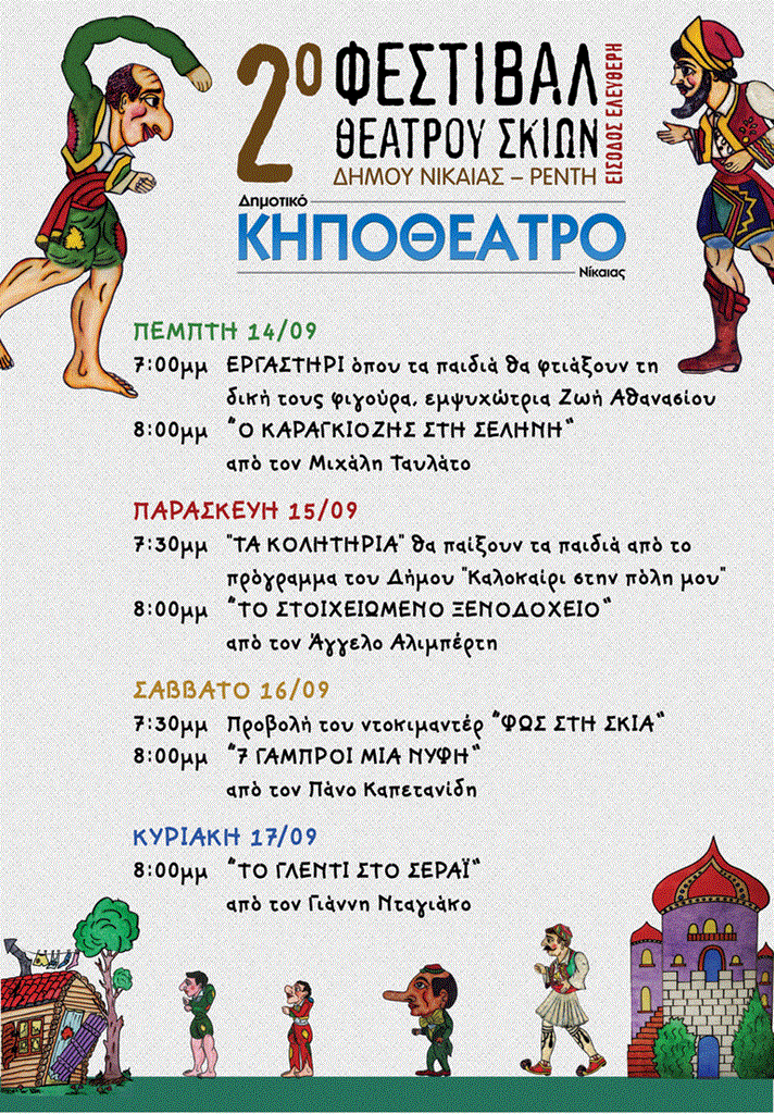 Με παραστάσεις Καραγκιόζη από διαφορετικούς δημιουργούς έρχεται το 2ο Φεστιβάλ Θεάτρου Σκιών που θα πραγματοποιηθεί από τις 14 έως 17 Σεπτεμβρίου στο Δημοτικό Κηποθέατρο Νίκαιας με είσοδο ελεύθερη για το κοινό.