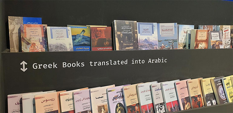 Ελληνικά βιβλία μεταφρασμένα στα αραβικά, βιβλία του αλεξανδρινού Κωνσταντίνου Καβάφη, παιδικές εκδόσεις, ιστορικά και λογοτεχνικά βιβλία αλλά και ψηφιακά προγράμματα είναι στη διάθεση των επισκεπτών.