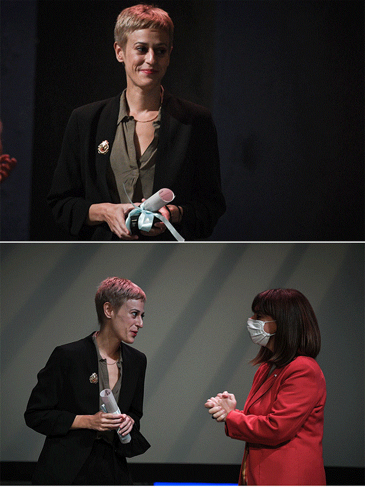 Η απονομή του βραβείου πραγματοποιήθηκε στο Εθνικό Θέατρο REX- Σκηνή Μαρίκα Κοτοπούλη, παρουσία της Προέδρου της Δημοκρατίας Κατερίνας Σακελλαροπούλου και της υπουργού Πολιτισμού Λίνας Μενδώνη. Συνυποψήφιες της Δήμητρας Βλαγκοπούλου ήταν η Μαίρη Μηνά και η Ελένη Στεργίου.