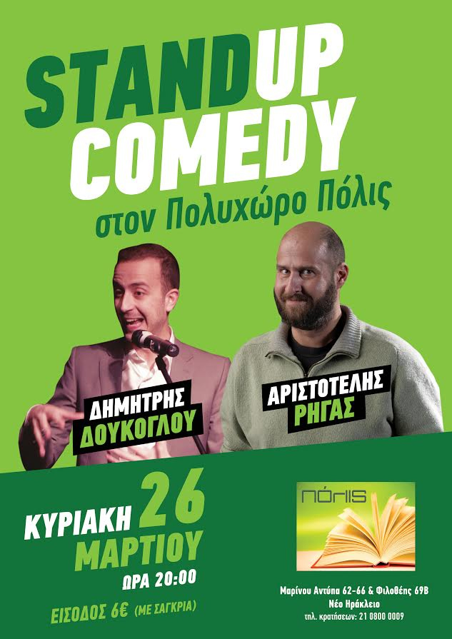 Το Πόλις συνεχίζει να υποδέχεται ταλαντούχους κωμικούς της ελληνικής stand-up σκηνής και την Κυριακή 26 Μαρτίου, στις 20.00, ο Αριστοτέλης Ρήγας με την κιθάρα του, παρέα με τον Δημήτρη Δούκογλου, έρχονται στο νέο χώρο πολιτισμού στο Ηράκλειο Αττικής και φυσικά υπόσχονται μια βραδιά γεμάτη γέλιο!