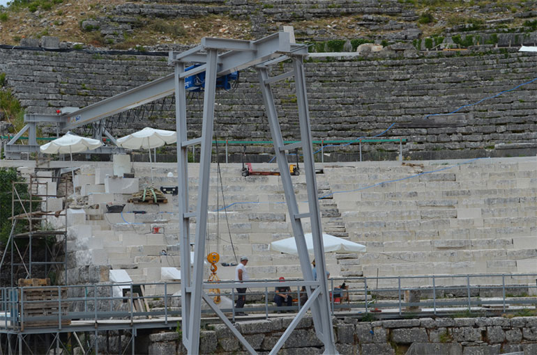 Τα έργα της α’ φάσης για την αποκατάσταση και ανάδειξη στο κάτω κοίλο του μεγάλου θεάτρου έχουν ολοκληρωθεί, αν και τα νερά πρόσφατων βροχοπτώσεων… διάβρωσαν την διάταξη κεντρικών εδωλίων. Οι δράσεις αφορούσαν εργασίες, αναστήλωσης και προστασίας του μνημείου καθώς και εργασίες υποδομών και διαμόρφωσης του περιβάλλοντα χώρου. Πρόσφατα, στην πλαγιά του βουνού, πάνω από το θέατρο, πραγματοποιήθηκαν εργασίες βραχοπροστασίας.