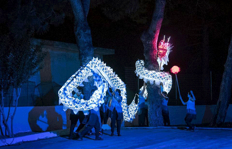 Χορευτές, μουσικοί, ηθοποιοί, κουκλοπαίχτες, ακροβάτες, ζωγράφοι και εικαστικοί από την Ελλάδα και την Κρήτη, την Ευρώπη και τη μακρινή Κίνα ένωσαν τις δυνάμεις τους και το αποτέλεσμα μάγεψε κυριολεκτικά τους θεατές που με έναν άψογο συντονισμό μετακινούνταν από σταθμό σε σταθμό με τη βοήθεια των εθελοντών οδηγών.