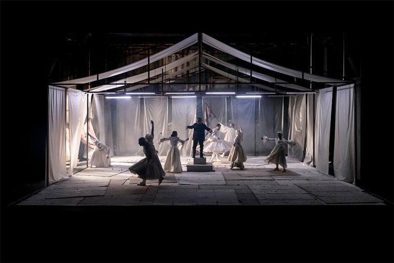 Το Εθνικό Θέατρο με αφορμή τον εορτασμό των 195 χρόνων από την ηρωική έξοδο του Μεσολογγίου θα παρουσιάσει σε δεύτερο live streaming -απευθείας από το Θέατρο Rex-Σκηνή «Ελένη Παπαδάκη»- το κορυφαίο έργο του εθνικού μας ποιητή Διονύσιου Σολωμού, «Οι Ελεύθεροι Πολιορκημένοι», την Κυριακή, 25 Απριλίου, στις 21:00. Τη σκηνοθεσία υπογράφει ο Θάνος Παπακωνσταντίνου, ο οποίος με την ιδιαίτερη εικαστική ματιά του δημιουργεί μια σκηνική ατμόσφαιρα τελετουργίας θανάτου και ανάστασης.