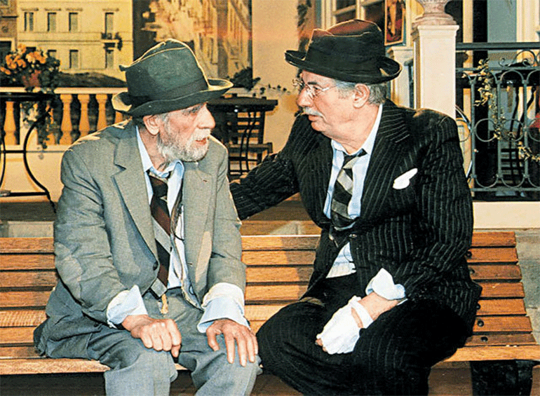 Όταν η χώρα μπήκε στον γύψο από τους δικτάτορες, ο Βασίλης Διαμαντόπουλος είχε εγκατασταθεί στο Παρίσι. Άλλωστε, ήταν γνωστός κομμουνιστής, μαχητικός συνδικαλιστής, ενώ είχε συμμετάσχει και στην Εθνική Αντίσταση. Θα επιστρέψει στην Ελλάδα το 1970 για να μας χαρίσει, δύο χρόνια μετά, την αξέχαστη σουρεαλιστική σειρά, δικής του έμπνευσης, «Εκείνος κι Εκείνος», ένα σπάνιο δείγμα πραγματικά καλής τηλεόρασης. Έπαιζε μαζί με τον φίλο του Γιώργο Μιχαλακόπουλο, σε εμπνευσμένα κείμενα του Μουρσελά.