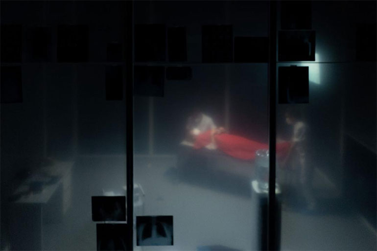 Η τηλεόραση προβάλλει ασταμάτητα πληροφορίες, ειδήσεις, μουσικές, τηλεπαιχνίδια, reality shows, διαφημίσεις. Οι νοσηλεύτριες/νοσηλευτές μαγνητίζονται από την οθόνη και την ακατάσχετη φλυαρία της. Τα σώματα λυγίζουν υπό το βάρος του τρόμου ή υπό το βάρος της ανοησίας που εκτοξεύεται με καταιγιστικό ρυθμό. Συνεχίζουν τις μηχανικές τους κινήσεις, ως μια τελευταία απόπειρα να παραμείνουν λειτουργικά ή έστω υγιή. Όμως ο τρόμος συνεχίζει, η έκλειψη επιμένει και η νύχτα διαρκεί.