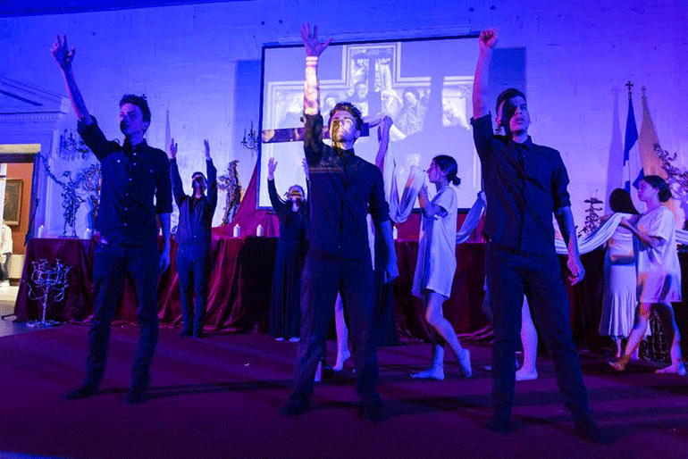 Την Ανάσταση έφεραν οι μαθητές πέντε σχολείων, που με το ταλέντο, τη νεανική φλόγα και αρκετά από τα παιδιά με τις ιδιαιτερότητές τους κατάφεραν να αποδώσουν με μοναδικό τρόπο ένα δρώμενο- οδοιπορικό στη Μεγάλη Εβδομάδα των Παθών, στο Μέγαρο της Παλαιάς Βουλής. Χορεύοντας αρμονικά, ερμηνεύοντας ύμνους και ψαλμούς με καθαρές, δυνατές φωνές , τα χαρισματικά αυτά παιδιά μετέτρεψαν την αίθουσα της Παλαιάς Βουλής σε μία εστία μυσταγωγίας. Μέσα από το λόγο, τη μουσική, την κίνηση και τις εικαστικές δημιουργίες- Αγγέλους μας οδήγησαν να βιώσουμε αληθινά τις Άγιες ημέρες των Παθών και την Ανάσταση του Χριστού. Παντρεύοντας στοιχεία της εκκλησιαστικής παράδοσης και καλλιτεχνικής νεότερης έκφρασης, οι έφηβοι μαθητές μέσα από τα δικά τους μάτια, τις ψυχικές ανάγκες και ανησυχίες τους, αλλά παράλληλα με αξιοπρέπεια, δυναμισμό και κατάνυξη ζωντάνεψαν τις ιερές στιγμές της επίγειας ζωής του Θεανθρώπου με στόχο τη βίωση της αλήθειας του Θείου Λόγου.