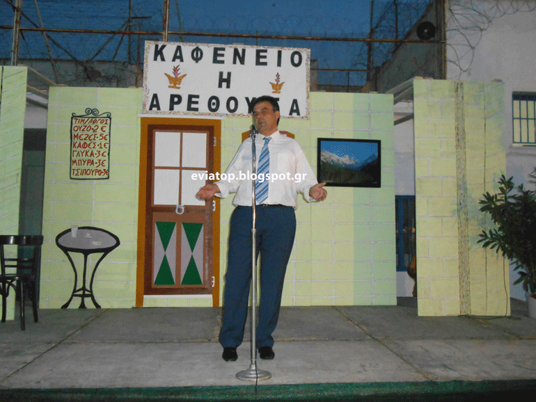 Φυλακών Χαλκίδας Σπύρος Αθανασίου στο χαιρετισμό του, ευχαρίστησε όλους όσοι βοήθησαν να δοθεί η παράσταση και βέβαια και όσους ανταποκρίθηκαν στο κάλεσμά του.