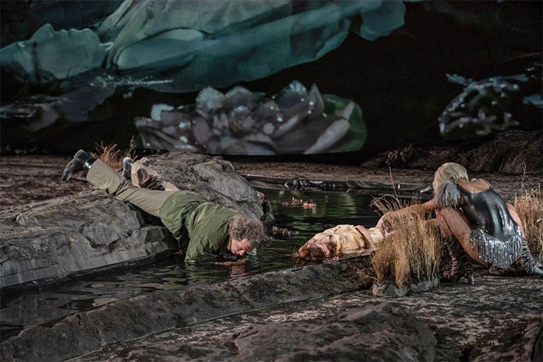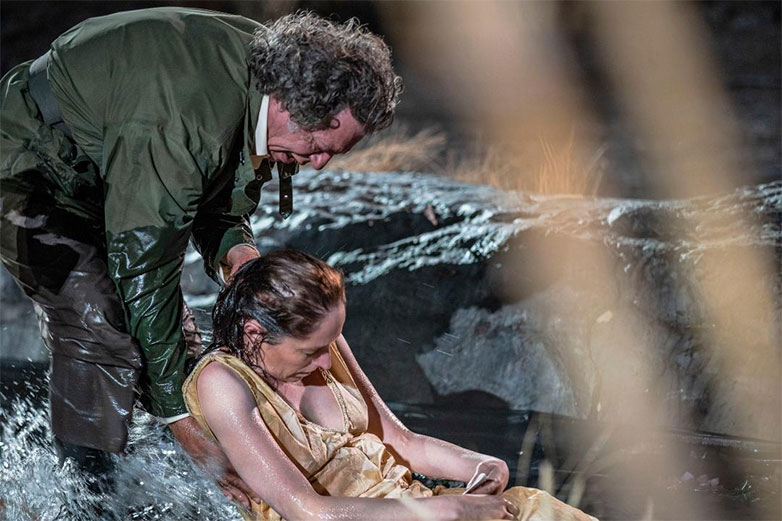 Το σκηνικό της παράστασης, ένα βαλτώδες δυστοπικό τοπίο με αγρωστώδη φυτά και νερό, αντανακλά την ερημιά της ανθρώπινης ύπαρξης. Στην παράσταση η Αφροδίτη κρατώντας μία κάμερα, και μέσα σε υποβλητική μουσική, κινηματογραφεί και αναμεταδίδει ζωντανά