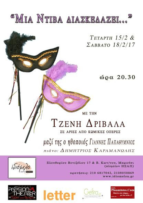 Η σοπράνο Τζένη Δριβάλα και ο ηθοποιός Γιάννης Παπαθύμνιος συνδυάζουν τα ταλέντα τους κι έρχονται στον Χώρο Τέχνης «Ιδιόμελο», σε μια διασκεδαστική μουσικο-θεατρική παράσταση με άριες μπραβούρας και ξεκαρδιστικά κείμενα.