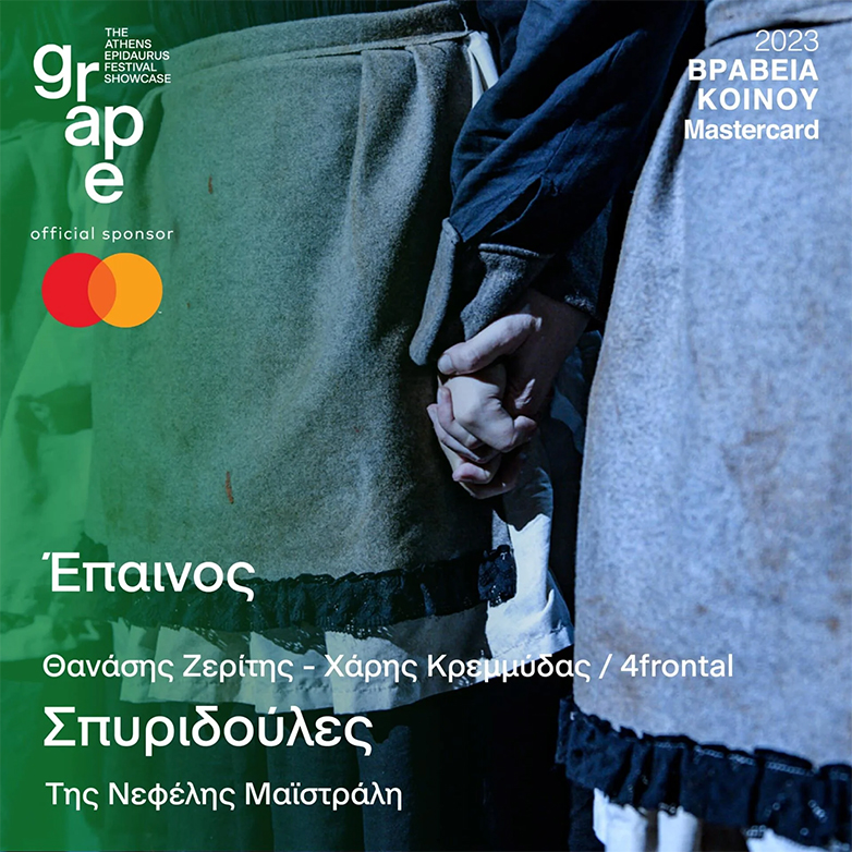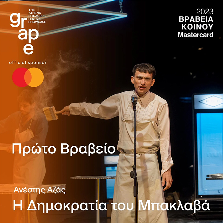 Υπενθυμίζεται πως η Mastercard, αποκλειστικός χορηγός του grape – GreekAgoraofPerformance, στηρίζει το Φεστιβάλ Αθηνών Επιδαύρου για 5η συνεχόμενη χρονιά, επιβεβαιώνοντας το ενδιαφέρον της εταιρείας για την ενίσχυση του Θεάτρου και των Τεχνών.