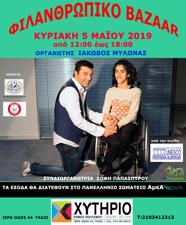 Με αφορμή τη θεατρική παράσταση «Η ζωγραφιά του Θεού» του Ιάκωβου Μυλωνά, που αφορά ένα κορίτσι ΑμεΑ που άλλαξε τον κόσμο, 30 Καλλιτέχνες θα πουλήσουν τα δημιουργήματα τους και όλα τα έσοδα θα διατεθούν στο Πανελλήνιο Σωματείο Ατόμων με Αναπηρία ΕΡΜΗΣ!!!