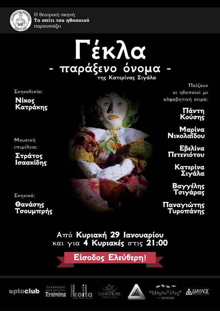 Στη θεατρική σκηνή «Τo Σπίτι του Ηθοποιού», από την Κυριακή 29 Γενάρη 2017 στις 21.00 και κάθε Κυριακή για 4 μόνο παραστάσεις, θα παίζεται το θεατρικό έργο της Κατερίνας Σιγάλα «Γέκλα-παράξενο όνομα-».
