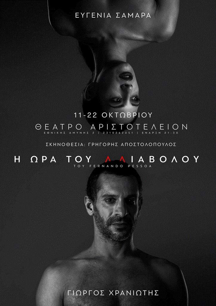 Η ανατρεπτική ομάδα της Dada – Art, ο εκκεντρικός σκηνοθέτης Γρηγόρης Αποστολόπουλος και η εταιρεία ΘΕΑ.ΜΑ. (θέατρα Μακεδονίας), μεταφέρουν για δεύτερη σεζόν στο θέατρο Αριστοτέλειον, το τολμηρό κείμενο του Πεσσόα, σε μία παράσταση γεμάτη εντάσεις και ανατροπές. Από Τετάρτη 11 Οκτωβρίου και για μόνο 10 παραστάσεις!