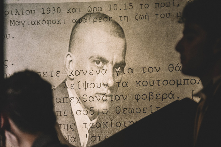 Ο Βλαδίμηρος Μαγιακόφσκι θα μπορούσε να είναι ορόσημο του σήμερα, ορόσημο για το πώς τα πράγματα αλλάζουν, πώς η Τέχνη μπορεί να γίνει το καύσιμο για την αναγέννηση μιας κοινωνίας από τις στάχτες της. Πως η Τέχνη μπορεί να προσηλωθεί στον Άνθρωπο, στις δυνατότητές του και στις αδυναμίες του, στην ανάγκη του για Έρωτα και Δημιουργία.
