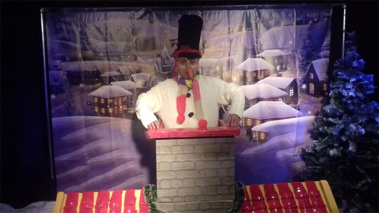 Η «Μαγική καμινάδα των Χριστουγέννων», είναι μια σπαρταριστή Χριστουγεννιάτικη κωμωδία καταστάσεων, όπου ένας καλικάντζαρος ο Τζο προσπαθεί με τις σκανταλιές του να καταστρέψει τη Μαγεία των Χριστουγέννων, ενώ ο Χιονάνθρωπος ο Κύριος Παγετώνας, να την προστατεύσει. Στην προσπάθειά τους να ξεφορτωθούν ο ένας τον άλλον, υποπίπτουν συνεχώς σε τέτοιες γκάφες όπου εκτός από το άφθονο γέλιο που παράγουν, καλούν συγχρόνως τα παιδιά –θεατές να πάρουν θέση και να συμμετάσχουν στην εξέλιξη του έργου. Συγχρόνως τα ξεναγούν φανταστικά, μέσα στον αθέατο κόσμο της Μαγικής Καμινάδας των Χριστουγέννων, από όπου ο Αϊ Βασίλης κάθε Παραμονή κατεβαίνει από εκεί στο σαλόνι του σπιτιού μας και αφήνει τα δωράκια τους, κάτω από το Χριστουγεννιάτικο δέντρο. Μόνο που σε αυτή την καμινάδα ο Αϊ Βασίλης φέτος δεν θα μπει μέσα για να αφήσει τα δώρα των παιδιών και να φύγει, αλλά και για να μας υπενθυμίσει το αληθινό νόημα των Χριστουγέννων.
