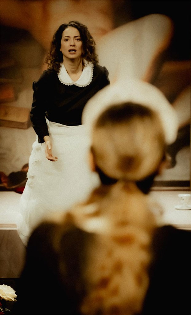 Η κυρία ντύνεται από την υπηρέτριά της. Η κυρία είναι ακατάδεχτη, η υπηρέτρια δουλοπρεπής. Και οι δύο χλευάζονται μεταξύ τους, η δούλα χαστουκίζει την κυρία. Ξαφνικά χτυπάει ένα ξυπνητήρι και όλη η σκηνή καταρρέει. Αποκαλύπτεται πως η κυρία δεν είναι καθόλου κυρία αλλά η μια από τις δύο δούλες , που παίζουν το παιχνίδι της κυρίας και της δούλας, όταν η κυρία τους απουσιάζει…