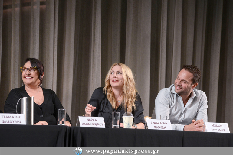 Η συγγραφέας του ομώνυμου βιβλίου Μάρα Μεϊμαρίδη, ο Σταμάτης Φασουλής που υπογράφει την σκηνοθεσία και διασκευή του έργου, μαζί με πρωταγωνιστές της πολυαναμενόμενης παράστασης, Μίρκα Παπακωνσταντίνου, Μαρία Καβογιάννη, Σμαράγδα Καρύδη, Μέμο Μπεγνή, Μελέτη Ηλία και Νικολέτα Βλαβιανού, μίλησαν στους δημοσιογράφους για την προετοιμασία τους ώστε να μεταφέρουν στη σκηνή, αυτήν την εμβληματική ιστορία που εξελίσσεται 130 χρόνια πριν, στα παράλια της Σμύρνης.