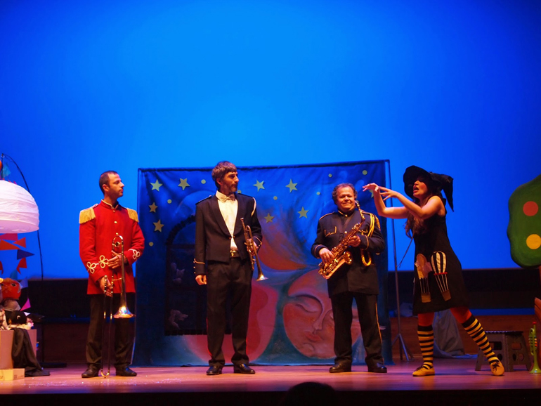 Η κούκλα μάγισσα Τόλμη ζωντανεύει και μαζί με τα παιδιά, ακολουθούν τους πολύχρωμους ήχους της τρομπέτας για ν’ ανακαλύψουν τον δρόμο για το ταξίδι αυτό! Τέσσερις Μουσικοταξιδευτές, 7 Υπέροχες Κούκλες, 9 Μουσικά κομμάτια και τραγούδια με χάλκινα πνευστά ζωντανά… επί σκηνής..! Το υπέροχο παραμύθι των Αδελφών Γκριμ «Οι Μουσικοί της Βρέμης» ζωντανεύει στ’ όνειρο των παιδιών… όχι όπως το ξέρουμε αλλά όπως το θέλουμε!