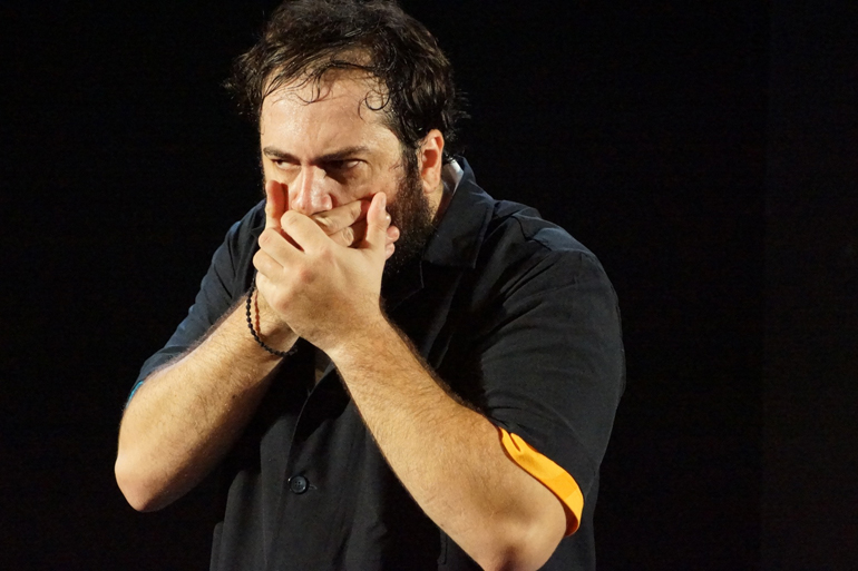 Μέσα από τον χειμαρρώδη μονόλογό του, που ακολουθεί τη ροή της σκέψης του, παρακολουθούμε τον αγώνα του να σταθεί όρθιος, ισορροπώντας ανάμεσα στο κωμικό και το δραματικό.