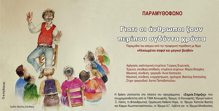 Το «Παραμυθόφωνο» έχει τη χαρά να παρουσιάσει στους ακροατές του τη νέα κατηγορία ηχογραφημένων αφηγήσεων Podcast με θέμα «Ηλικιωμένοι σοφοί και μαγικοί βοηθοί»! Η δράση υλοποιείται στο πλαίσιο του προγράμματος «Σημεία Στήριξης», που συγχρηματοδοτείται από το ΤΙΜΑ Κοινωφελές Ίδρυμα, το Κοινωφελές Ίδρυμα Ιωάννη Σ. Λάτση, τη Φιλανθρωπική Οργάνωση Hellenic Hope, το Ίδρυμα Καπετάν Βασίλη & Κάρμεν Κωνσταντακόπουλου, το Ίδρυμα Α. Γ. Λεβέντη και το Ίδρυμα Μποδοσάκη.