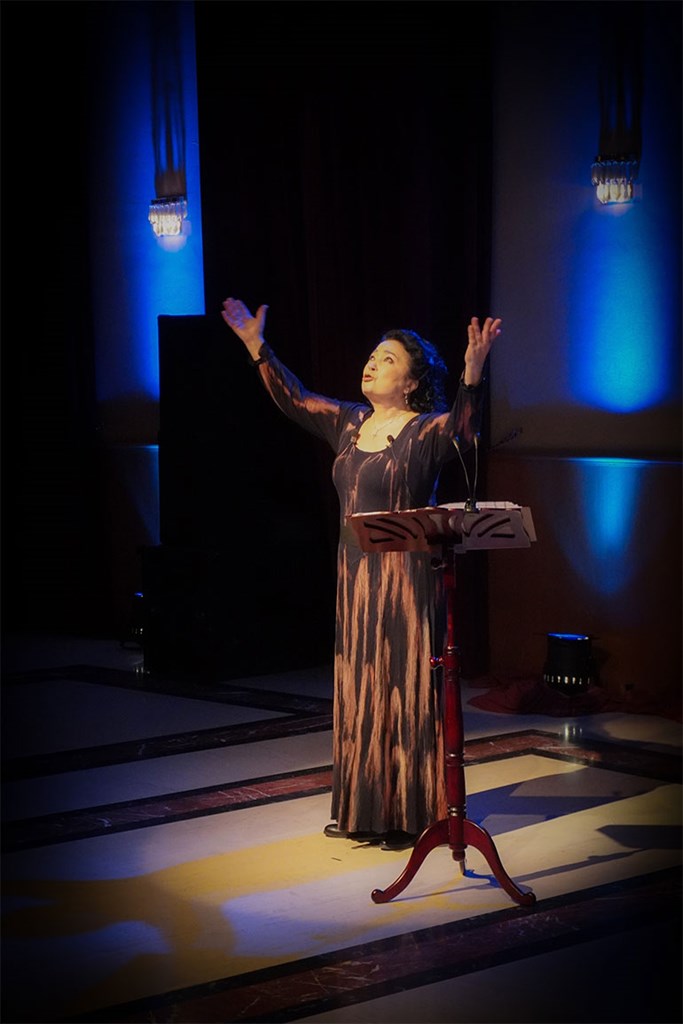 Η γνωστή ηθοποιός ερμήνευσε όλους τους ρόλους του έργου που αφηγείται την ιστορία μιας καταξιωμένης Ελληνίδας καλλιτέχνιδας της Όπερας που διέπρεψε στο εξωτερικό.