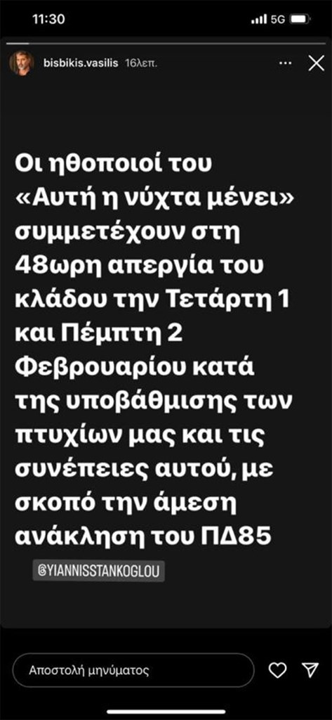 Παράλληλα, σταματούν και παραγωγές σε σειρές όπως γνωστοποίησαν αρκετοί ηθοποιοί μέσω των προσωπικών τους λογαριασμών στα social media.