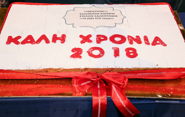 συγκεντρώθηκαν όλοι οι ηθοποιοί και συντελεστές της παράστασης «Στέλιος Καζαντζίδης. Η Ζωή του Όλη» και έκοψαν την πρωτοχρονιάτικη πίτα παρουσία και της Μιμής Ντενίση.