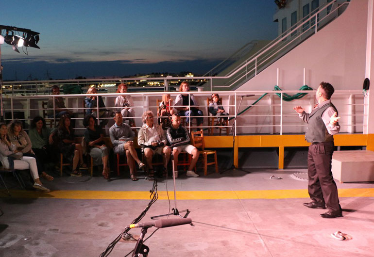 Μιλήστε μας για την εμπειρία σας από την παράσταση στην Αντίπαρο πάνω στο Ferry-Boat ; Πώς αντέδρασαν οι θεατές και ποια η δική σας αίσθηση; Πώς είναι τελικά να βλέπεις και να παίζεις θέατρο μέσα σε ένα καράβι;