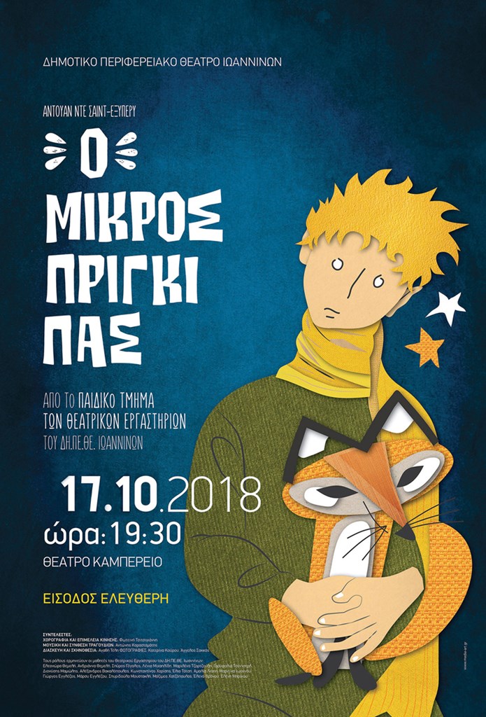 Το ΔΗΠΕΘΕ Ιωαννίνων κάνει γνωστό ότι εξαντλήθηκαν τα δελτία εισόδου για την παράσταση του Θεατρικού Εργαστηρίου «Ο Μικρός Πρίγκιπας» του Antoine de Saint- Exupery, η οποία θα γίνει στις 17 Οκτωβρίου, στο Καμπέρειο Θέατρο.