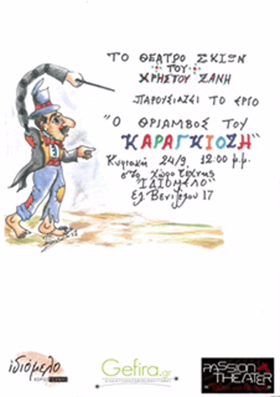 Το θέατρο Σκιών του Χρήστου Ζάνη παρουσιάζει το έργο «Ο θρίαμβος του Καραγκιόζη» την Κυριακή 24 Σεπτεμβρίου 2017 στον Χώρο Τέχνης Ιδιόμελο.