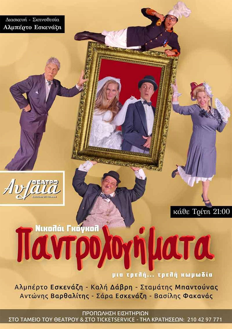 Τα «Παντρολογήματα» του Νικολάι Γκόγκολ παρουσιάζονται σε σκηνοθεσία του Αλμπέρτο Εσκενάζη, από Τρίτη 17 Οκτωβρίου και κάθε Τρίτη, στο θέατρο Αυλαία.