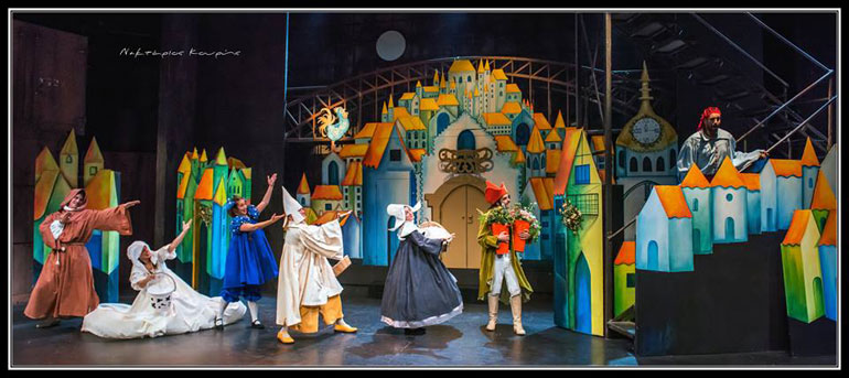 Όλα αυτά ενώνονται μεταξύ τους με αφήγηση, θεατρικούς διαλόγους, σκηνικά που χορεύουν και πολύχρωμα κοστούμια -με άρωμα εποχής-, κρατώντας αμείωτο το ενδιαφέρον των παιδιών.
