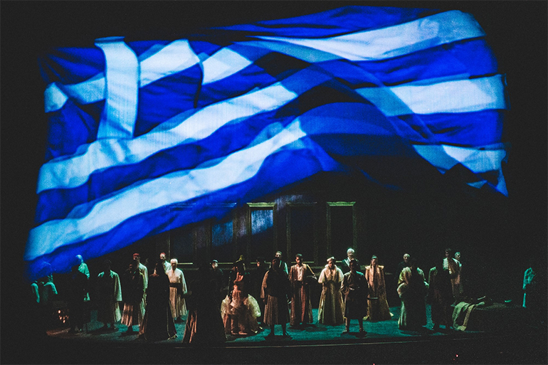 Το πολιτικό έργο του Πέτερ Βάις «Η Δολοφονία του Μαρά» σε μετάφραση Μάριου Πλωρίτη, σκηνοθεσία Κοραή Δαμάτη και μουσική Δήμητρας Γαλάνη, με έναν σαρανταμελή θίασο, στην Εταιρεία Μακεδονικών Σπουδών.