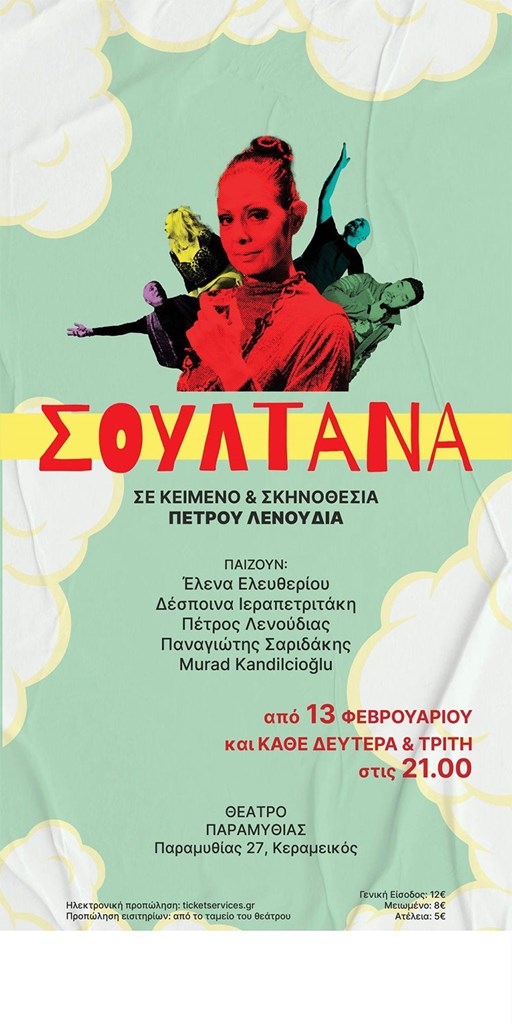 Η ομάδα «Βούκτηνος» παρουσιάζει την παράσταση «Σουλτάνα» του Πέτρου Λενούδια που σκηνοθετεί ο ίδιος από τη Δευτέρα 13 Φεβρουαρίου 2023 και κάθε Δευτέρα-Τρίτη στο θέατρο Παραμυθίας για οκτώ (8) παραστάσεις.