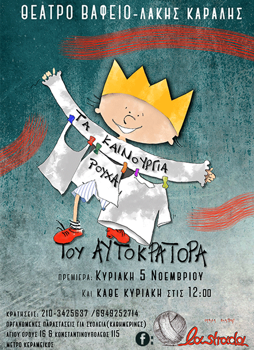 H ομάδα θεάτρου La Strada παρουσιάζει το παραμύθι του Χανς Κρίστιαν Άντερσεν «Τα Καινούρια Ρούχα του Αυτοκράτορα» στο θέατρο Βαφείο-Λάκης Καραλής από τις 5 Νοεμβρίου και κάθε Κυριακή στις 12:00.